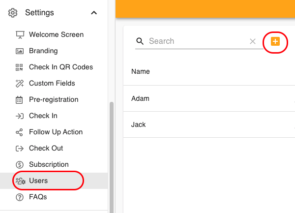 Navigate to Settings > Users. Click on the "+" button.